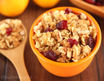 Pre heat the oven 150 degree C (300 degree F) In a large bowl, stir together the oats, wheat germ, walnuts, almonds, and dried cranberries. In a separate bowl, mix together the oil, honey, vanilla and cinnamon. Drizzle over the dry ingredients, and stir to coat evenly. Spread the mixture out in a thin layer on an ungreased cookie sheet. Bake for 30 to 40 minutes in the preheated oven, stirring every 10 minutes to toast evenly. Allow to cool completely before storing in an airtight container. Granola will become crunchier as it cools.
